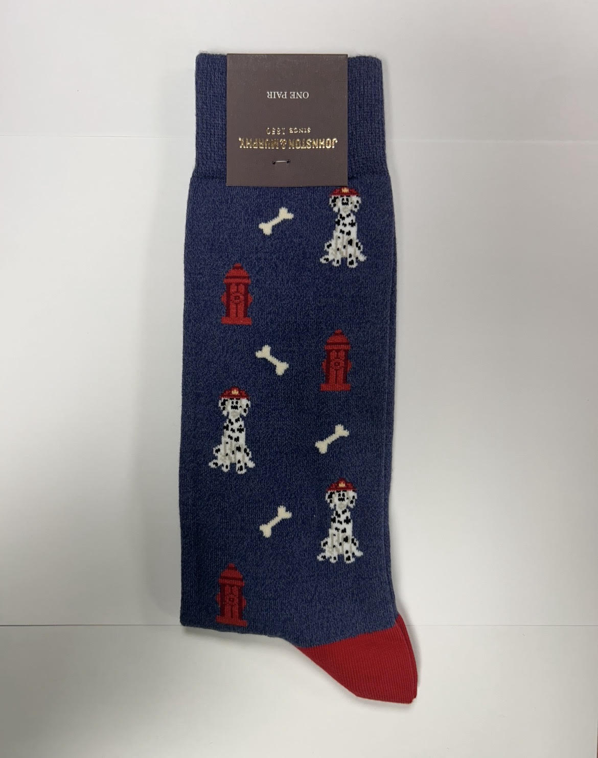Novelty socks, blue, red, dog, pima cotton, extra soft, comfortable, fire hydrant, unisex