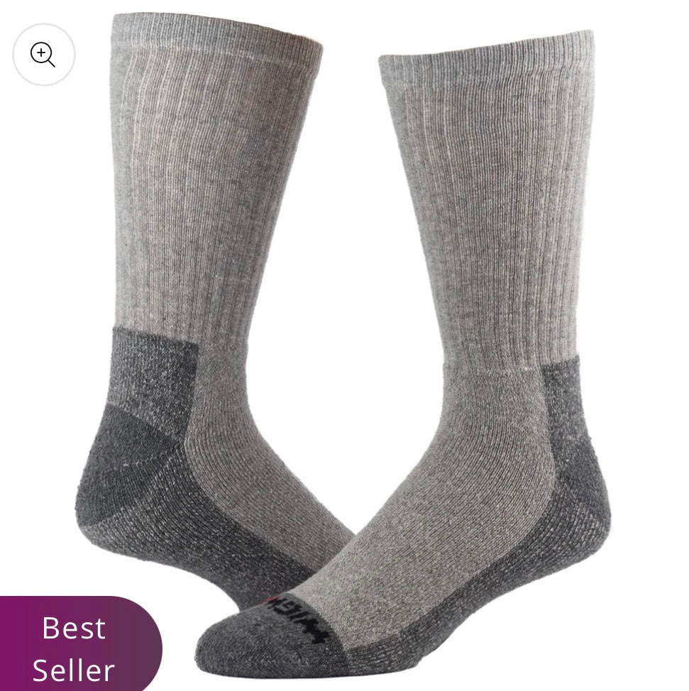 Built tough for the job site and beyond, Wigwam's At Work Crew socks deliver all-day comfort without compromise. Featuring a cushioned sole that absorbs impact, reinforced foot-bottom and ankle for extra durability, and a seamless toe that won't bug you during long shifts. These American-made workhorses keep your feet happy from sunrise to sunset, proving that hardworking socks don't have to sacrifice comfort.